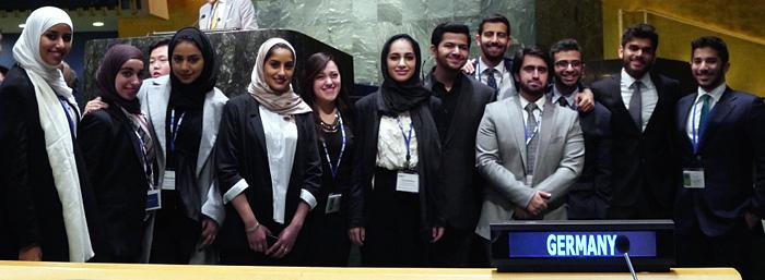The student delegation comprised Omar Al Mutawa, Roudha Ahli, Alia Al Hazami, Salem Al Qassimi, Yonas Ackholm, Al Jawhara Al Juwaied, Omar Al Owais, Kreol Arakulath, Maitha Al Abdouli, Huda Al Hammadi, Buthayna Muftah, Khalid Al Bah, and Nasser Anwahi. The delegation was lead by Dr. Johannes van Gorp, Assistant Professor of Political Science, as Faculty Adviser and Omar Al Mutawa as Head Delegate.