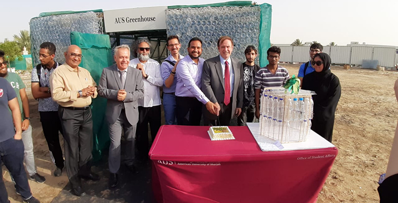 May 3, 2019, marked the inauguration of the AUS Greenhouse, a first-of-its-kind, student-led project that took three years and 200 AUS volunteers to plan and build. Over 90 percent of the materials used to build the greenhouse were recycled, including more than 20,000 plastic water bottles.