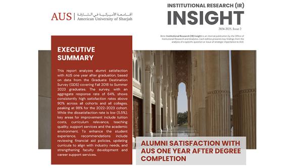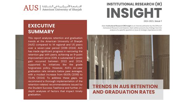 Institutional Research (IR) Insights is an internal publication featuring key findings from analytical studies related to AUS' mission and operations. Each edition presents data-driven insights to support informed decision-making.