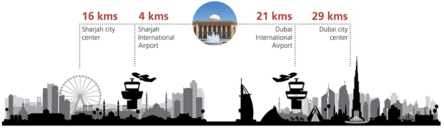 AUS is located just minutes from the heart of Dubai and the Dubai International Airport, providing easy access to the world-famous attractions of the neighboring emirate.