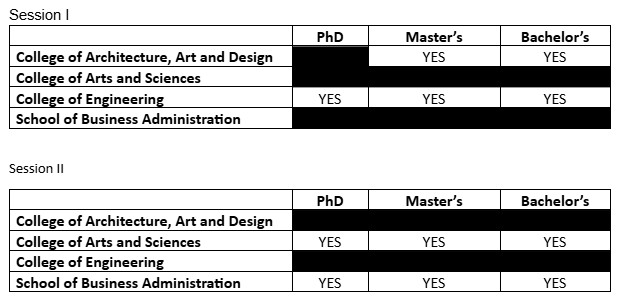 Note: All graduating undergraduate and masters’ students who are registered in their final courses up until the end of the withdrawal period (13th week of classes) of their graduation semester are eligible to walk in the commencement of their graduation semester even if they do not pass their final courses. Nevertheless, meeting all your degree graduation requirements is a must to earn your university diploma.