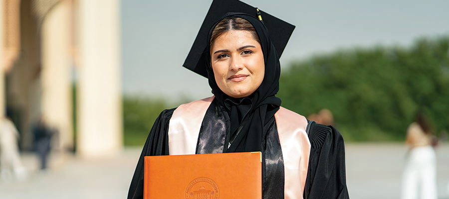 Your Highness Sheikha Bodour bint Sultan Al Qasimi, President of the American University of Sharjah; esteemed members of the Board of Trustees; Chancellor Dr. Tod Laursen; Provost Dr. Matthias Ruth, respected faculty and staff; distinguished guests; our ever-supportive families; and, most importantly, my fellow graduates of Fall 2025 – Assalamu Alaikum wa Rahmatullahi wa Barakatuh.