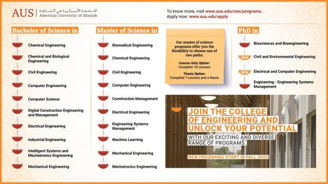 The College of Engineering at American University of Sharjah has launched CEN 2.0 GR - a revitalised approach to its graduate programmes designed to equip students with the technical and leadership skills and qualities necessary to spearhead innovation in both industry and academia.