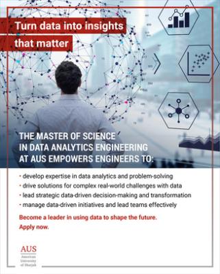 American University of Sharjah (AUS) has launched the Master of Science in Data Analytics Engineering (MSDAE) and will welcome its first cohort in Fall 2026, meeting growing demand for professionals who can turn complex data into decisions that improve performance, strengthen planning and guide digital transformation across sectors. Offered through the Department of Industrial Engineering in the AUS College of Engineering, the MSDAE is designed for individuals seeking to deepen their analytical capabilities while building the managerial perspective needed to lead data-driven initiatives.
