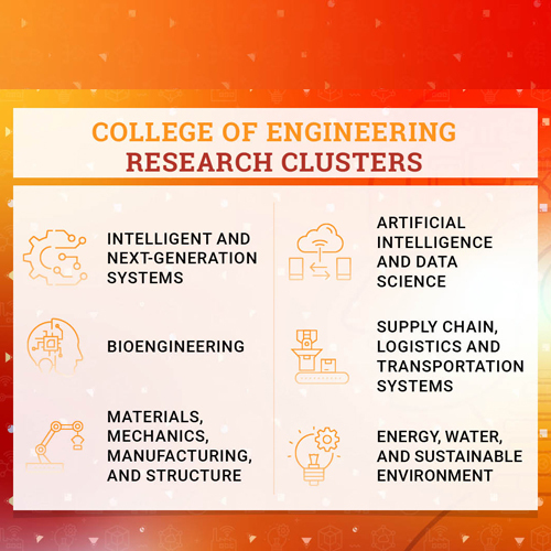 We invite you to explore these research clusters and learn more about the transformative work being conducted by our faculty members and students. Join us on this exciting journey as we continue to push the frontiers of engineering research, innovation and education.