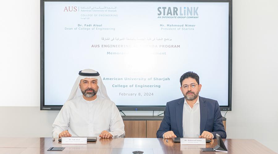 The MOA, which operates within the framework of the AUS Engineering Al Nukhba (elite) Program, outlines an approach to cooperation between CEN and Starlink. Among its provisions, Starlink pledges to offer annual internships to AUS students, enriching their educational journey with practical experience integral to their graduation requirements. Both parties will jointly supervise selected capstone and research projects, leveraging their expertise to steer students towards impactful research outcomes.