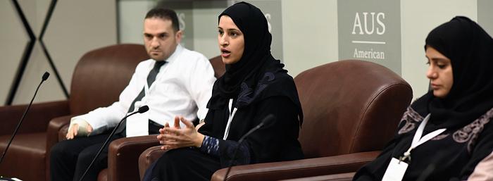 Through the panel discussions, the participants shared their experiences and professional advice with AUS students, speaking about both the challenges and opportunities facing the region today. High-profile AUS faculty members also moderated the panels and AUS alumni participated by sharing their success stories and life lessons.