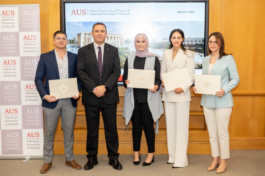 American University of Sharjah (AUS) recently honored four exceptional graduate students for their outstanding achievements. These students have demonstrated unwavering dedication and excellence in their respective fields, earning them well-deserved recognition during the Academic Year 2022-2023.