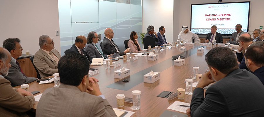 American University of Sharjah (AUS) hosted the UAE Engineering Deans Meeting on campus, bringing together 21engineering deans and leaders from 18 universities across the UAE to collectively reimagine how we educate the next generation of engineers and computer scientists, enhancing research impact, driving curriculum modernization, and ensuring graduates are ready to lead in artificial intelligence, sustainability, advanced manufacturing and digital transformation, in service of a knowledge-based, sustainable and technologically advanced economy.