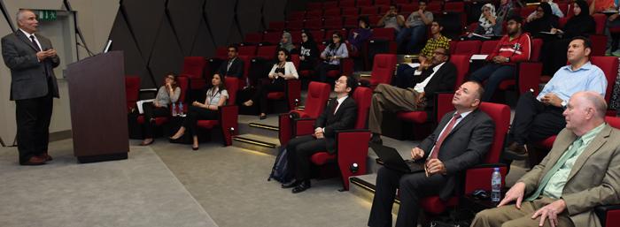 The speakers were Dr. Hasan Al-Nashash, Professor of Biomedical Engineering at AUS and Chairman EMBS UAE, who gave a presentation entitled "Introduction About the Field of Biomedical Engineering;" Dr. Samir El-Masri, Director of eHealth education, GE Healthcare, who gave the presentation "eHealth, Analytics and Industrial Internet of Things"; and Dr. Jerald Yoo, Associate Professor of Electrical Engineering at Masdar Institute, Abu Dhabi, who gave the lecture "Wearable Sensors: Towards Preemptive and Proactive Healthcare."