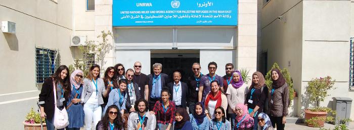 Eleven fourth- and fifth-year architecture students from the College of Architecture, Art and Design (CAAD) at American University of Sharjah (AUS), accompanied by professors Michael Hughes, Maria Mortera and George Katodrytis, travelled to Amman, Jordan October 14-18, 2014. The purpose of the trip was to visit the Jordan Field Office of UNRWA (United Nations Relief and Works Agency for Palestine Refugees in the Near East) and the Jerash Palestinian Refugee camp, which is the site for the design of a series of projects currently developed at the architecture studios of CAAD in collaboration with UNRWA.