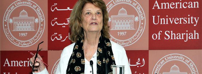Professor Margot Badran, a renowned historian and specialist in women's studies, gave a thrilling lecture entitled "Women's Autobiography from the 1919 Revolution to the 2011 Revolution in Egypt" yesterday, Monday, October 31, at American University of Sharjah (AUS).