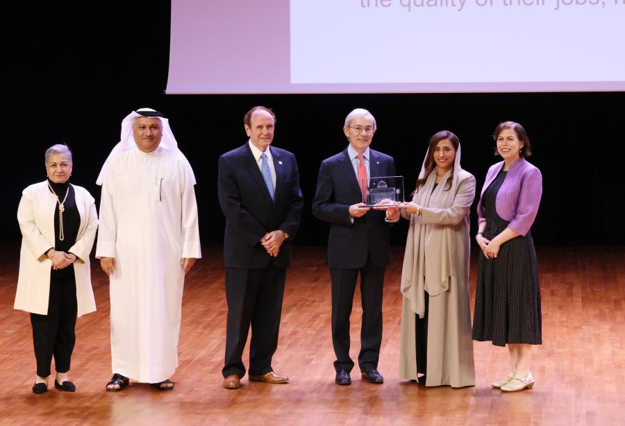 Speaking on the importance of the event, Dr. Narjess Boubakri, Dean of SBA, said, "We are honored to have Sir Christopher Pissarides speak to our students and faculty about some of the most crucial and relevant issues facing the fast-changing business world today. This is such a relevant topic in the fourth Industrial Revolution, where artificial intelligence and robotics have dominated all aspects of our lives, whether in the workplace, our studies or even at home. All this leads us to question the future of work and well-being, which we have learned more about from Sir Christopher. In SBA, we have always believed in the importance of keeping our finger on the pulse of the economy and in preserving our vital role as an integrator between the industry and students. Having Sir Christopher speak to our students today is part of our mission in graduating global citizens who are more than capable of contributing to the UAE’s development agenda and building its knowledge economy, while having a wider understanding of the issues that affect the world today and impact its future,"