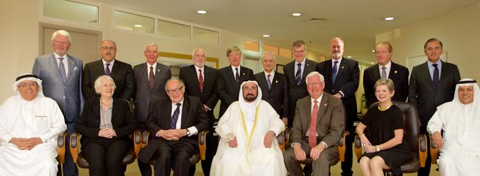 His Highness Sheikh Dr. Sultan Bin Mohammad Al Qassimi, Supreme Council Member, Ruler of Sharjah and President of American University of Sharjah (AUS), expressed satisfaction at the progress and development of the university as well as at its plans for the future. His remarks came during the university's Board of Trustees meeting held at the AUS campus today, December 7.